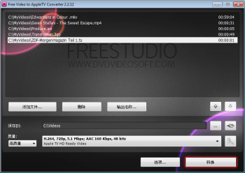 如何使用 Free Video to AppleTV Converter转换视频操作过程。