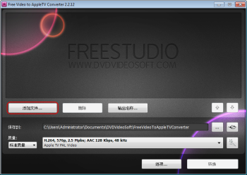 开始键 > 所有程序> DVDVideoSoft > Programs > Free Video to AppleTV Converter 或者你可以点击桌面的图标。