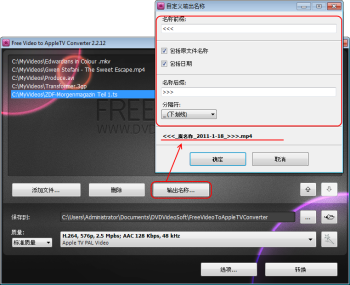 在窗口的下面你可以看见输出文件的名称模式,它是根据目前的设定而形成的。