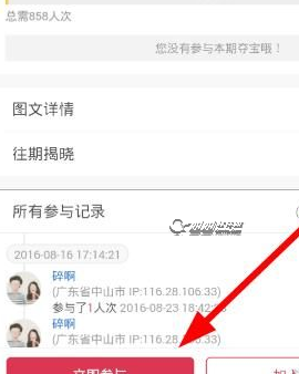 2、在“奖品详情”页面点击下方的“立即参与”按钮;