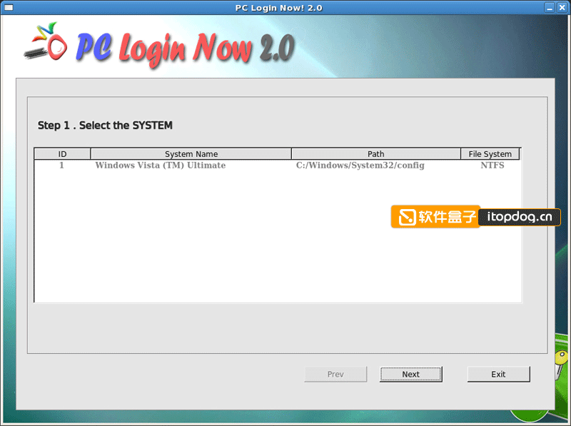 PCLoginNow可以自动检测出系统ID编号、Windows 版本、SAM文件(密码文件)所在位置和磁盘分区的文件系统: