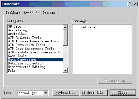 2.从列表中找到Data Converters,将Load Objects命令拖拉到Editor菜单中。关闭Customize对话框。