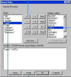 点击Complete List显示Layer字段中所有的属性值。双击LOT-L,完成查询语句。