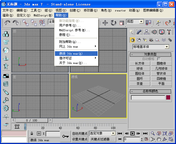 2、打开菜单栏里的帮助->激活 3ds max,如下图: