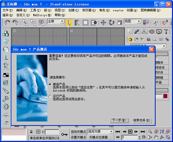 3、打开3ds max 7产品激活 窗品,选择“激活产品”操作,再下一步。