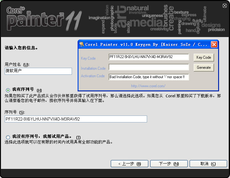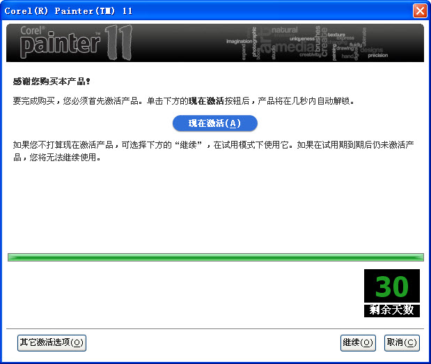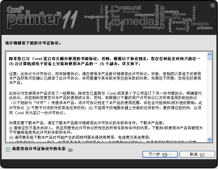 2¡¢ÔËÐÐCorel.Painter.11¼òÌåÖÐÎİæ.exe£¬³öÏÖÏÂͼ½çÃæ