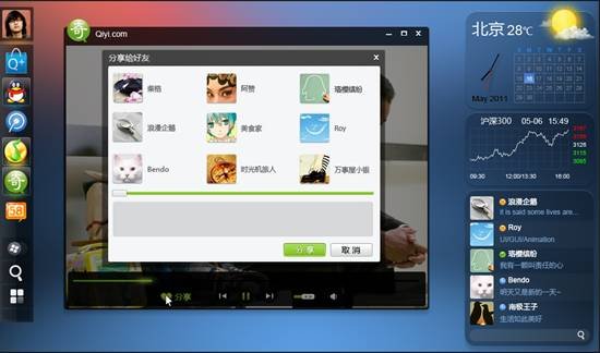 在演示视频中,用户可以切换到“Q+”桌面以替代windows桌面,用Widget替代windows程序,腾讯借壳搭建的“操作系统”初具雏形。