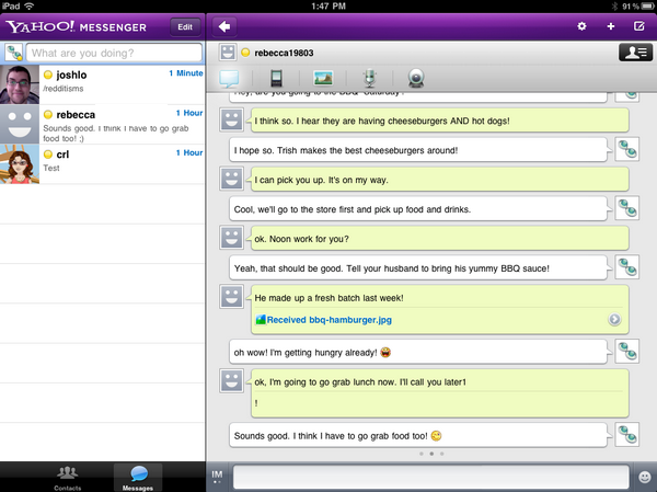 雅虎通(通用)自2009年4月已可在iPhone和 iPod Touch 使用。但有了这个通用更新,iPad用户将不再需要使用它们的较大iPad的屏幕上的未优化的iPhone客户端。