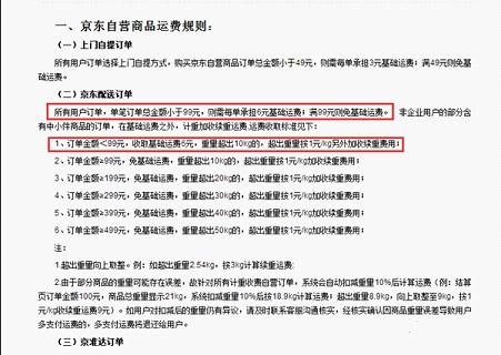 京东官方给出的声明显示:所有用户订单选择上门自提方式,购买京东自营商品订单总金额小于49元,则需每单承担3元基础运费;满49元则免基础运费。所有用户订单,单笔订单总金额小于99元,则需每单承担6元基础运费;满99元则免基础运费。