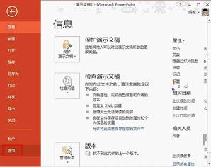 ①我们启动office2013,例如我打开的就是PowerPoint2013,单击菜单栏文件--选项。