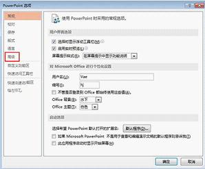 ②在弹出的PowerPoint选项界面,切换到高级选项卡。