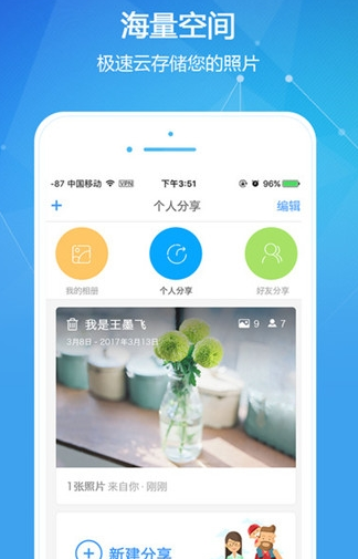 用照片记录下生活中的每个值得珍藏的瞬间,创建共享相册,邀请您的家人、朋友、同事分享你们的照片。