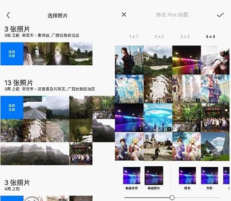 如果你同时选中多个日期、地点、事件、主题、相薄里的很多照片,App 则会自动为你选中特定的多张放入 Picky 并生成小方格。