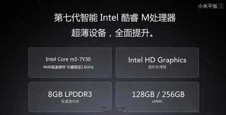 至于配置方面,小米平板3配置9.8英寸屏幕,支持2048*1536的分辨率。同时还搭载了Intel第七代酷睿M处理器M3-7Y30,8GB LPDDR3内存,并且拥有128GB/256GB两种型号,运行的是win10系统。