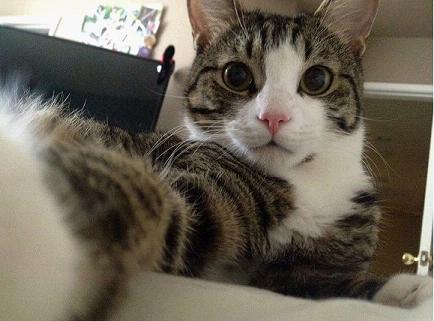不过这样的“意外”可遇不可求,想拍出这样一张恰到好处的照片并不容易。于是,美国一家数字内容公司Current Studios制作了一款特殊的猫咪“自拍神器”APP——这款名为Candid Catmera的应用,可以通过定制化的猫咪面部识别技术给它们拍照。主人不在家的时候,平板电脑上打开的应用会播放吸引猫咪的动画,比如奔跑的老鼠、游来游去的鱼、猫粮、激光点等等。等猫好奇地跑过来,APP就会趁机拍下猫咪的照片,角度就像是它们的自拍。然后自动发给主人,上传社交网络。