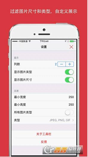 抓图猫提供图片尺寸过滤,把网页里的小元素可以通通忽略掉,仅保留你关心的大图。同时还可以过滤图片类型,比如你只想要GIF图片,那就可以只抓取GIF类型的图片哦。