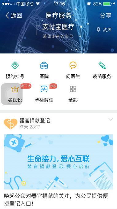 支付宝用户在App首页搜索“医疗服务”进入医疗服务平台后,可通过“器官捐献登记”的应用进入登记页面。这个登记页面由卫计委下属中国器官移植发展基金会开发管理。