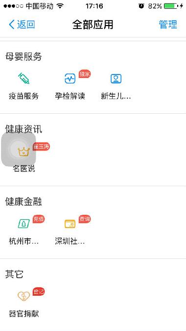 2、点开全部,下拉到最下方,有着“器官捐献登记”的服务中心