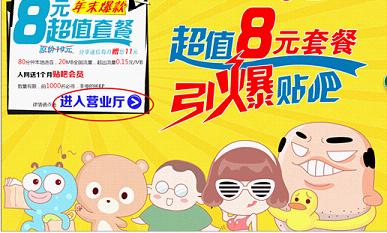 80分钟本地主叫,20MB全国流量,超出流量0.15元/MB,赠送一个月贴吧会员,套餐原价19元分享通信每月赠送11元,所以套餐只要8元。