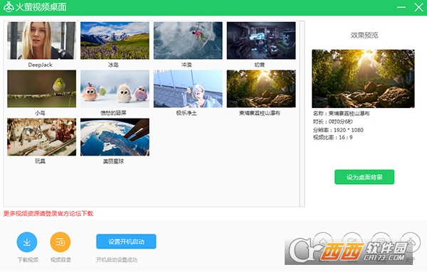 点击“视频目录”,然后将你需要添加的视频拷贝到这个窗口里,重启火萤视频桌面,就可以看到啦