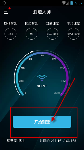 用户只需要点击软件下方的“开始测速”,既可以轻松的进行手机测速了哦!