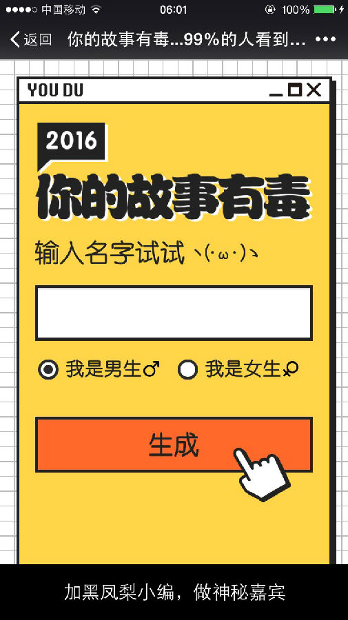 微信新玩法你的故事有毒,只要用户输入自己的名字就会出现关于小伙伴的故事,相信很多的小伙伴还不知道怎么玩,就让小编给大家详细的介绍一下吧。