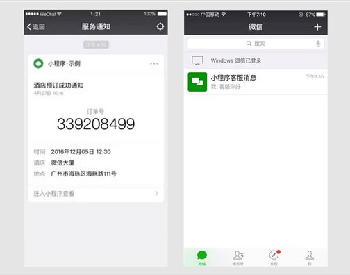 小程序和小程序、小程序和聊天界面可以迅速切换。