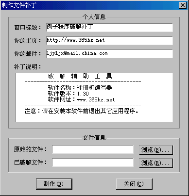 除此之外还有一个制作破解补丁的附加工具,制作界面如图所示。