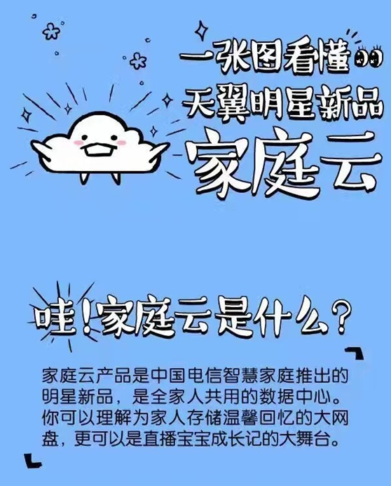 “家庭云”随中国电信宽带业务开通,输入手机号即可邀请家庭成员加入。支持电脑、手机、电视数据共享,可按照不同主题整理家人照片,照片、视频可在电视上播放。