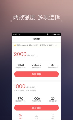 快客贷是基于移动互联网的全流程线上网络借款APP, 主要解决都市年轻白领与蓝领在日常生活中的小额借款需求,提供1000元/30天和2000元/90天“小额度”,“短周期”的灵活借款。快客贷采用互联网大数据方式,省去了传统金融服务的繁琐流程及手续,旨在提供一个简单方便、灵活快捷的借款新模式:3分钟认证,一键申请,快至10分钟批款,到期一键还款。