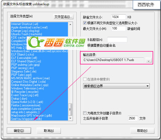 3、选择所有类型,然后选择一个输出目录确定即可。