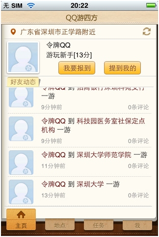 继推出Android版后,近日iPhone版QQ游四方正式登陆苹果App Store。此款手机软件提供了基于地理位置的移动社交服务,让人不得不联想到l较早前发布的QQ都市iOS版——基于现实地点来进行社交游戏,与之不同的是,QQ游四方更侧重于提供在生活中随时随地查看周边、报到留言的LBS服务。
