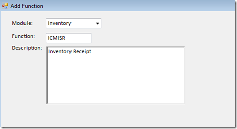 VALUES(‘Inventory’,'ICMISR’,'Inventory Receipt’)