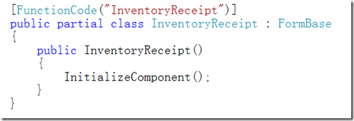 修改窗体的继承基类为FormBase,给窗体类添加FunctionCode的特性,这个特性用于反射查找这里的窗体