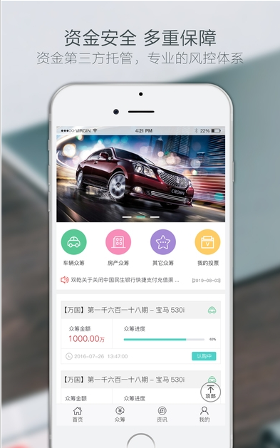 2.风险较低:投资人通过购买车辆而直接持有车辆所有权、使用权,相对其他众筹模式而言,该众筹模式的风险更低;