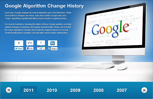 作为一个搜索引擎营销人员,了解这些算法的改变有助于分析网站排名以及流量的变化状况,下面我们列出了几次影响比较大的算法升级,熟悉这些算法的变动将会有助于你的SEO工作。