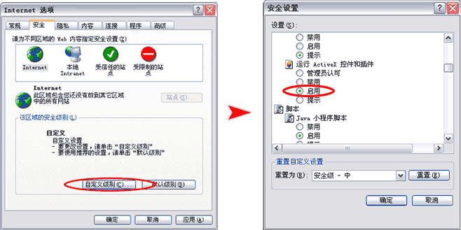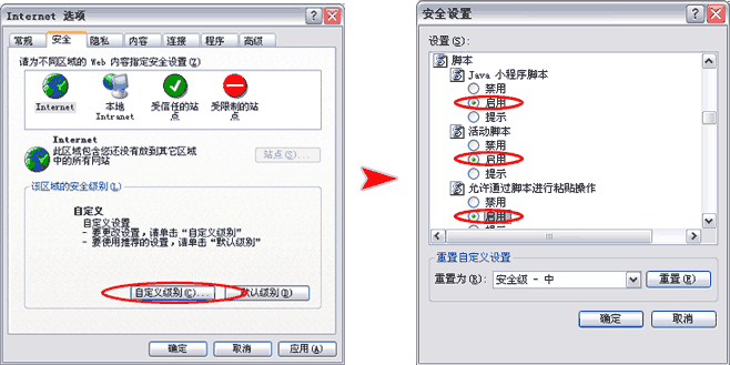 1、方法一:与“开启JAVA”相同。当您选择“默认级别”时,系统也默认把ActiveX为您开启了。
