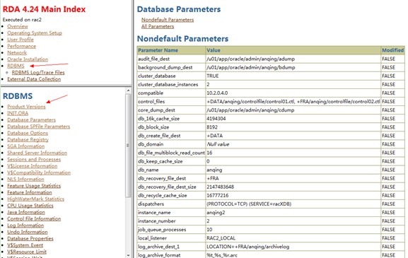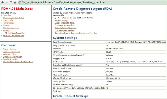通过这个示例,也可以看到RDA 收集的信息非常详细,从OS到DB。如果想要了解一个系统的状况,使用RDA 是最方便的方式。这个估计也是Oracle 需要RDA的一个重要原因了。