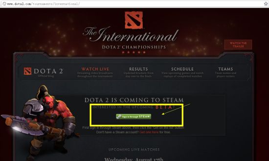 第二步打开dota2国际官方网站: http://www.dota2.com/tournaments/international/