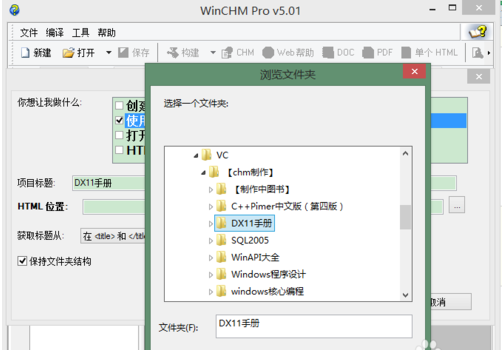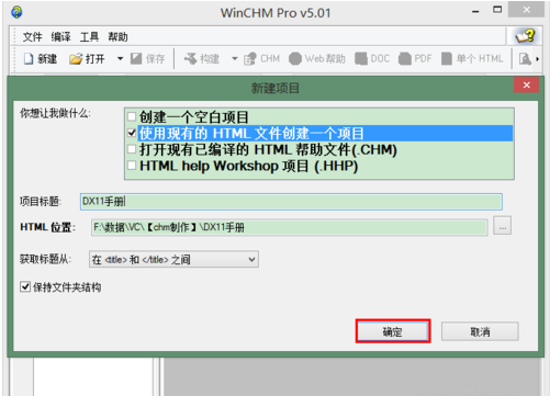 准备工作完成后,启动WinCHM,按顺序完成以下步骤: