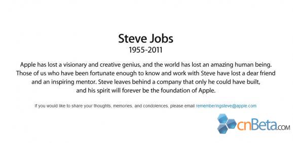 我们今天沉痛宣告史蒂夫·乔布斯逝世。