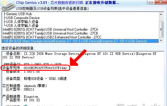 1) 先取得 ChipGenius 或是 USBView 上U盘的 SN 的資料: