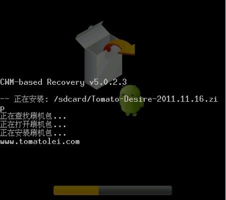 5.清空完数据,就做好刷机前的准备了,然后选择“安装存储卡中的zip刷机包”——“从存储卡选择zip刷机包”——选中之前Copy进SD卡的zip刷机包,按确认键(电源键和轨迹球都可以),选择“是的 - 安装 XXXXX.zip”,确认即开始刷机了。