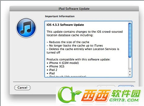 iOS4.3.3固件升级,本次升级主要是修复外界关注的iOS设备后台记录用户定位信息的问题。