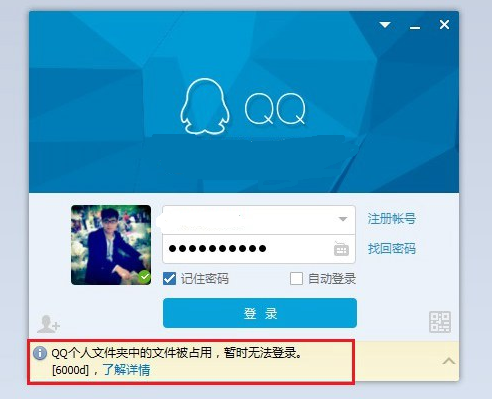 如果在电脑中同时安装了IM1.5和QQ,两者只可以同时登录一个,如果先登录IM,再登录QQ则会提示:“QQ个人文件夹中的文件被占用,暂时无法登陆。”,如下图