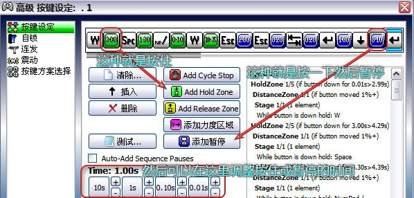 以上全部步骤需要用到的只有Add Hold Zone(添加按住区域)和添加暂停两个命令……