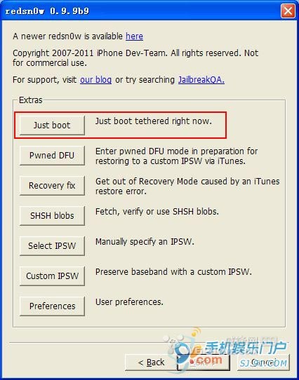需要说明的是,RedSn0w 0.9.9b9仍然是不完美越狱