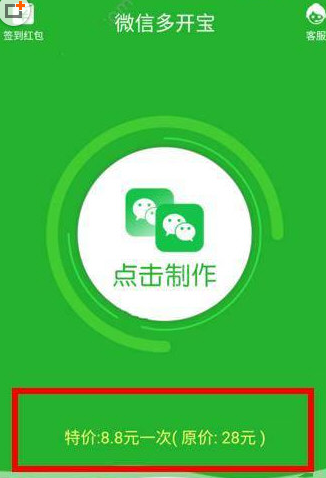 但是在上面大家可以看到,微信多开宝原价格28,现在只要8.8一次!