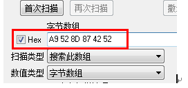 A9 52 8D 87 42 52 复制下来 选着CE 字节数组