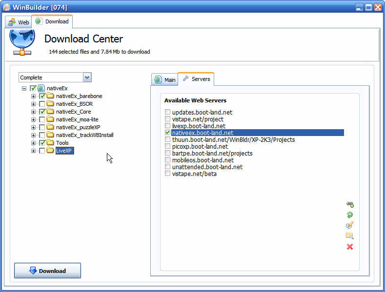 然后再选择 "NativeEx_barebone", "NativeEx_core", "Tools" 三项, 然后点击Download.
